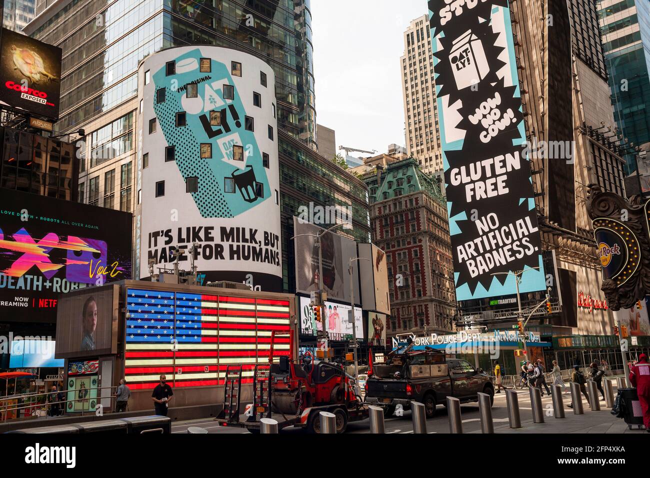 New York Usa 20th May 2021 The Nasdaq Stock Exchange And Surrounding Billboards Are Decorated For The Initial Public Offering Of The Oatly Brand Oat Milk In Times Square In New York On